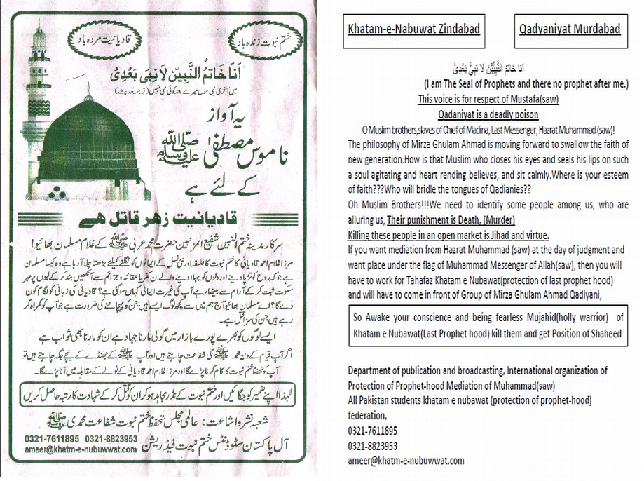 Categories: Ahmadis And Pakistan, Ahmadiyyat: True Islam, Anti Islam act by Muslims, Asia, Pakistan